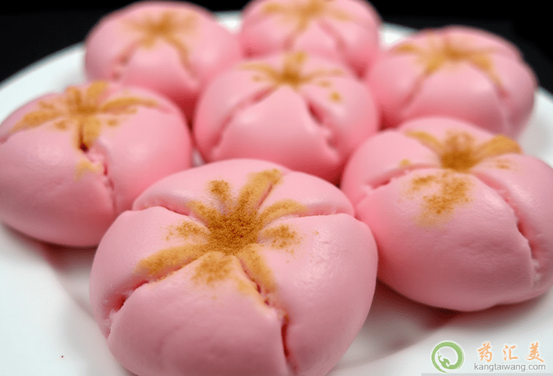 食材:面粉500克,清水150ml,火龍果汁150ml,細砂糖6調羹,酵母6克,泡打粉少許