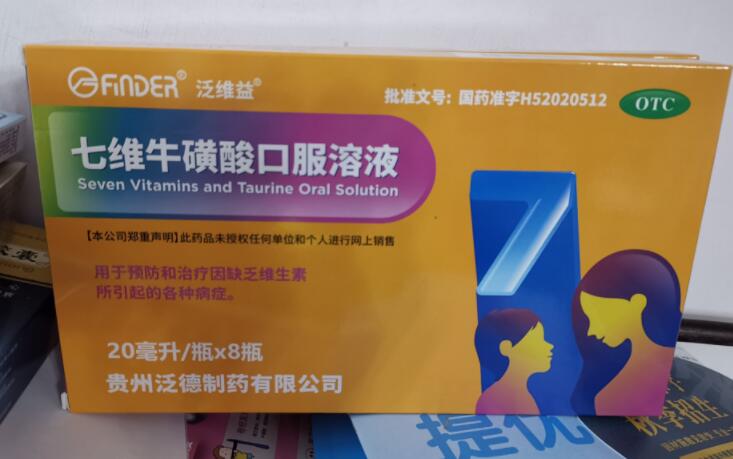 答七維;撬峥诜芤涸诤芏嗟胤剿幍、診所都有的銷售,七維;撬峥诜菏且豢罹S生素類非處方藥藥品口服液,用于預防治療因缺乏維生素所引起的各種病癥。七維牛磺酸口服溶液的說明書【成份…