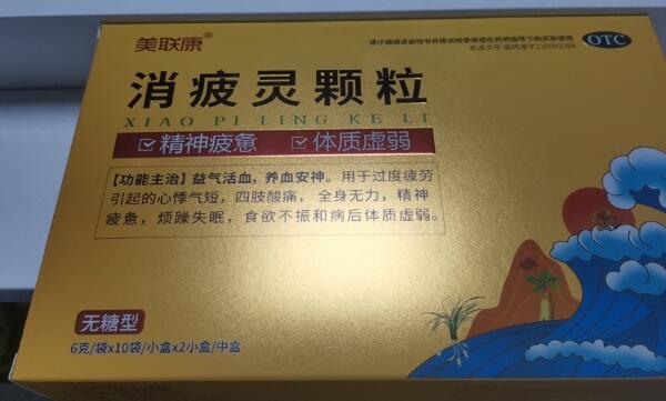 【性狀】美聯康消疲靈顆粒為棕色至棕褐色的顆拉;氣微,味甜、微苦。