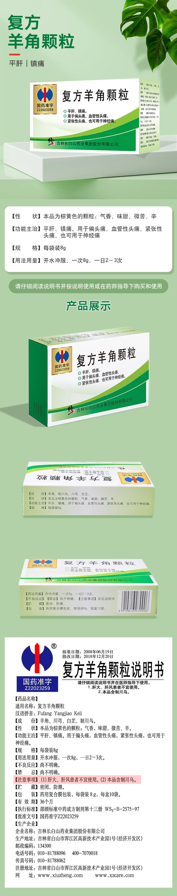 【主要成份】羊角、川芎、白芷、制川烏。