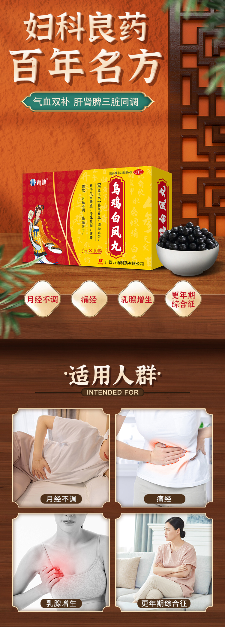 【商品成分】 烏雞(去毛爪腸)、人參、白芍、丹參、香附(醋制)、當歸、牡蠣(煅)鹿角、桑螵蛸、甘草、熟地黃、青蒿、天冬、黃芪、地黃、川芎、銀柴胡、芡實(炒)、山藥。輔料為賦形劑蜂蜜。